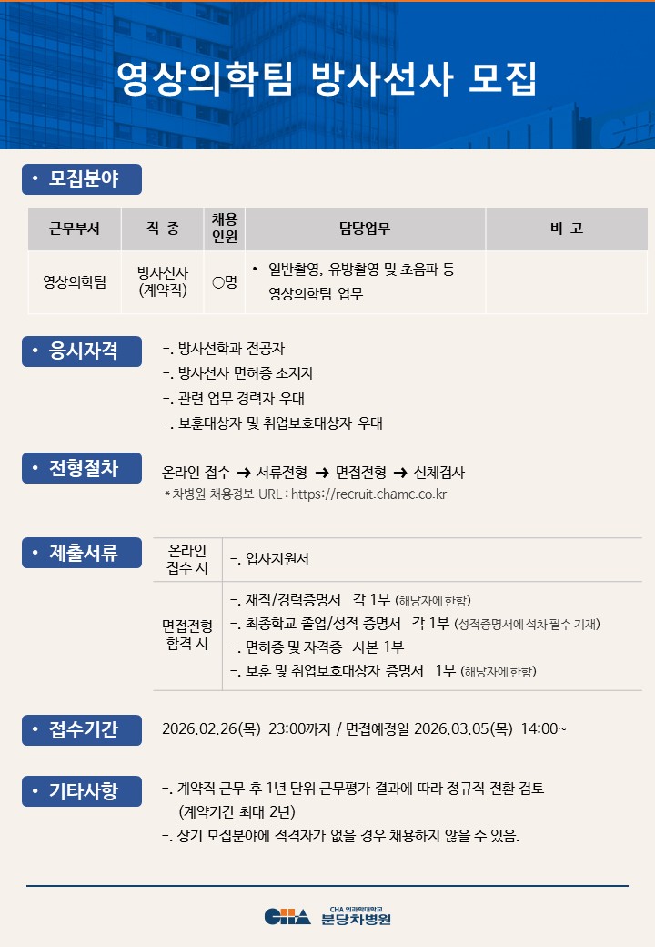 [ºÐ´çÂ÷º´¿ø] ¿µ»óÀÇÇÐÆÀ ¹æ»ç¼±»ç ¸ðÁý