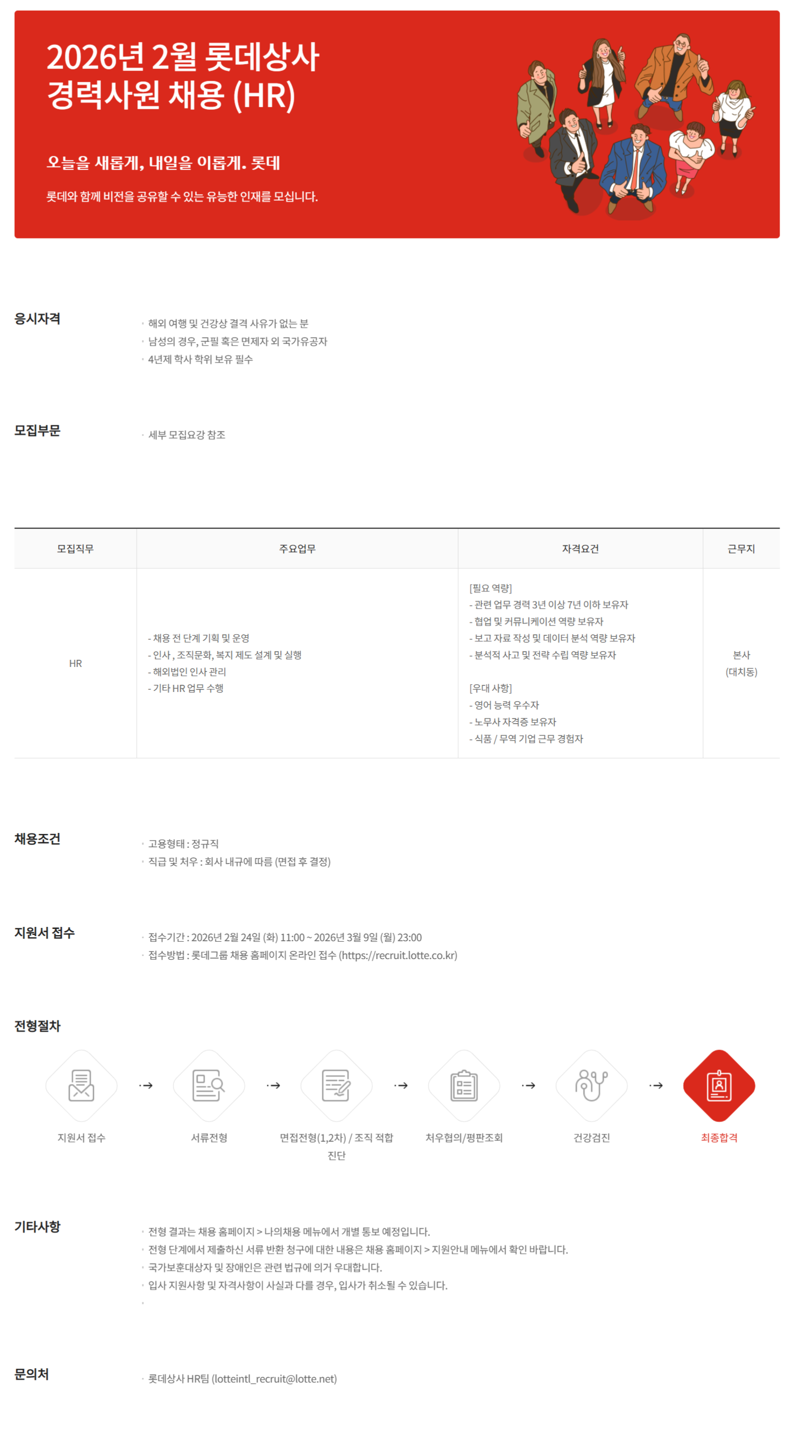 2026³â 2¿ù ·Ôµ¥»ó»ç °æ·Â»ç¿ø ä¿ë (HR)