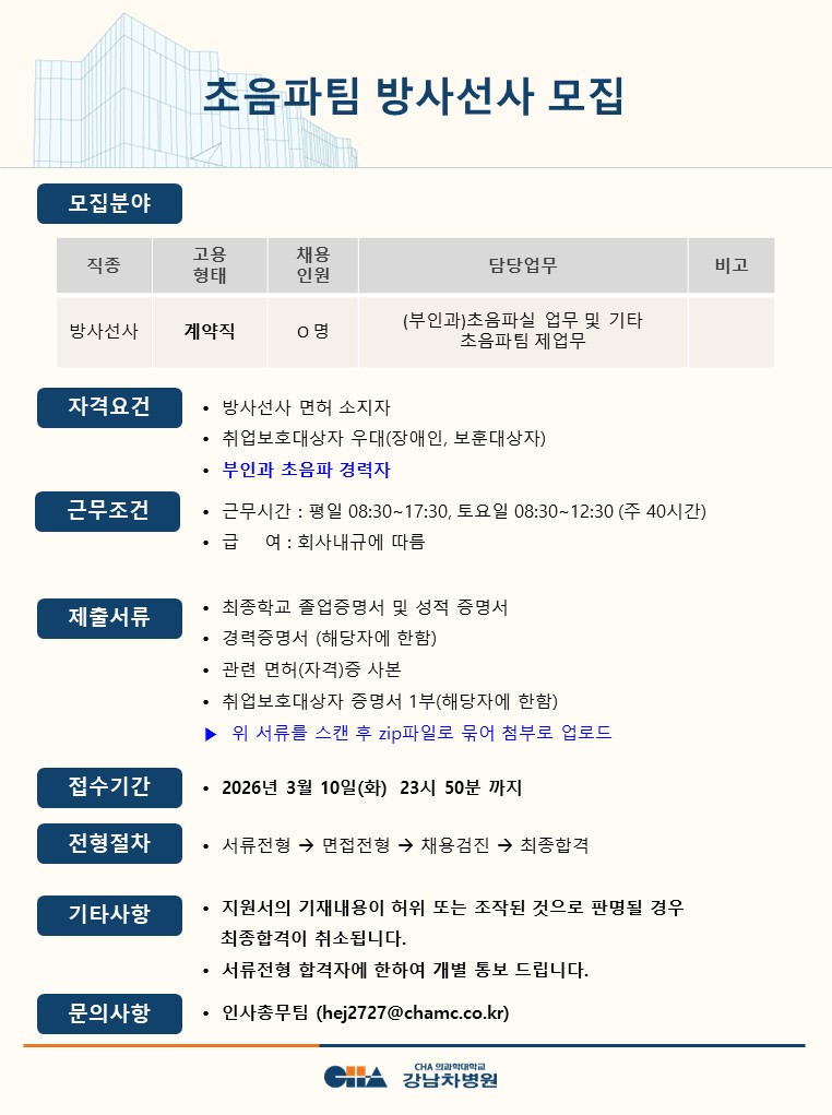 [°³²Â÷º´¿ø] ÃÊÀ½ÆÄÆÀ ¹æ»ç¼±»ç ¸ðÁý