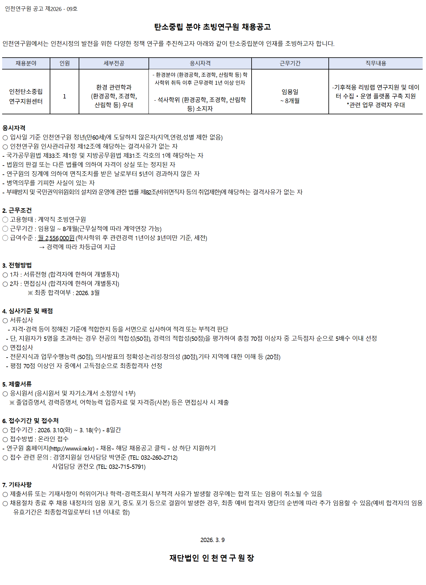 ÀÎõ¿¬±¸¿ø °ø°í Á¦2026 - 09È£
