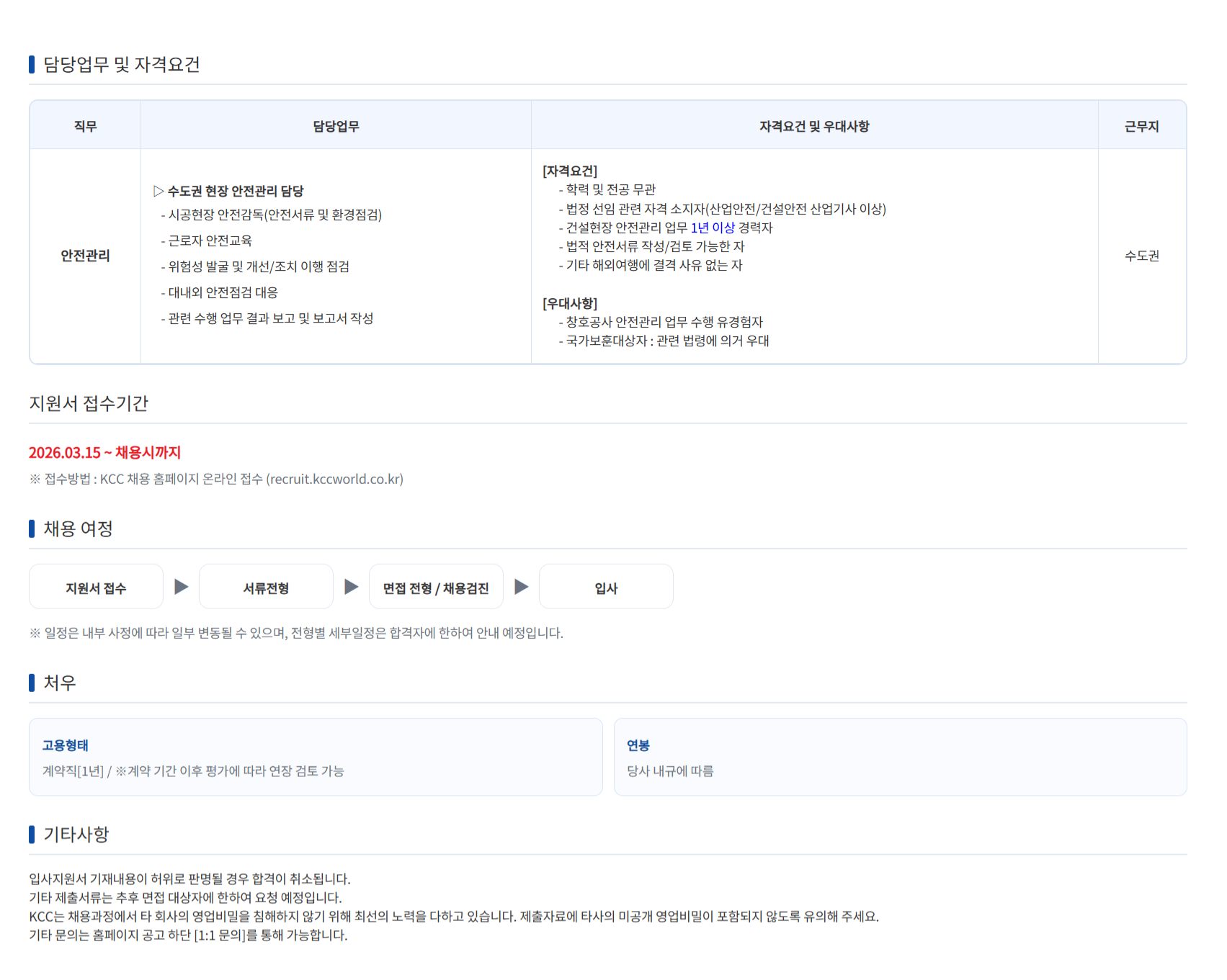 [KCC] ¼öµµ±Ç ½Ã°øÇöÀå ¾ÈÀü°ü¸®/°¨µ¶ ´ã´çÀÚ ÀÎÀç ä¿ë