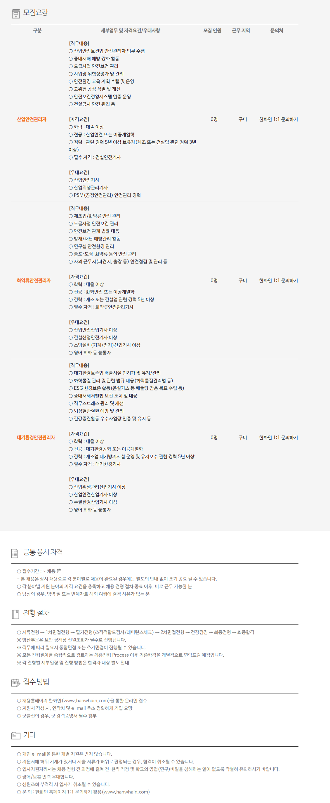 ÇÑÈ­½Ã½ºÅÛ ±¸¹Ì»ç¾÷Àå ¾ÈÀü°ü¸®ÀÚ °æ·Â»ç¿ø ä¿ë