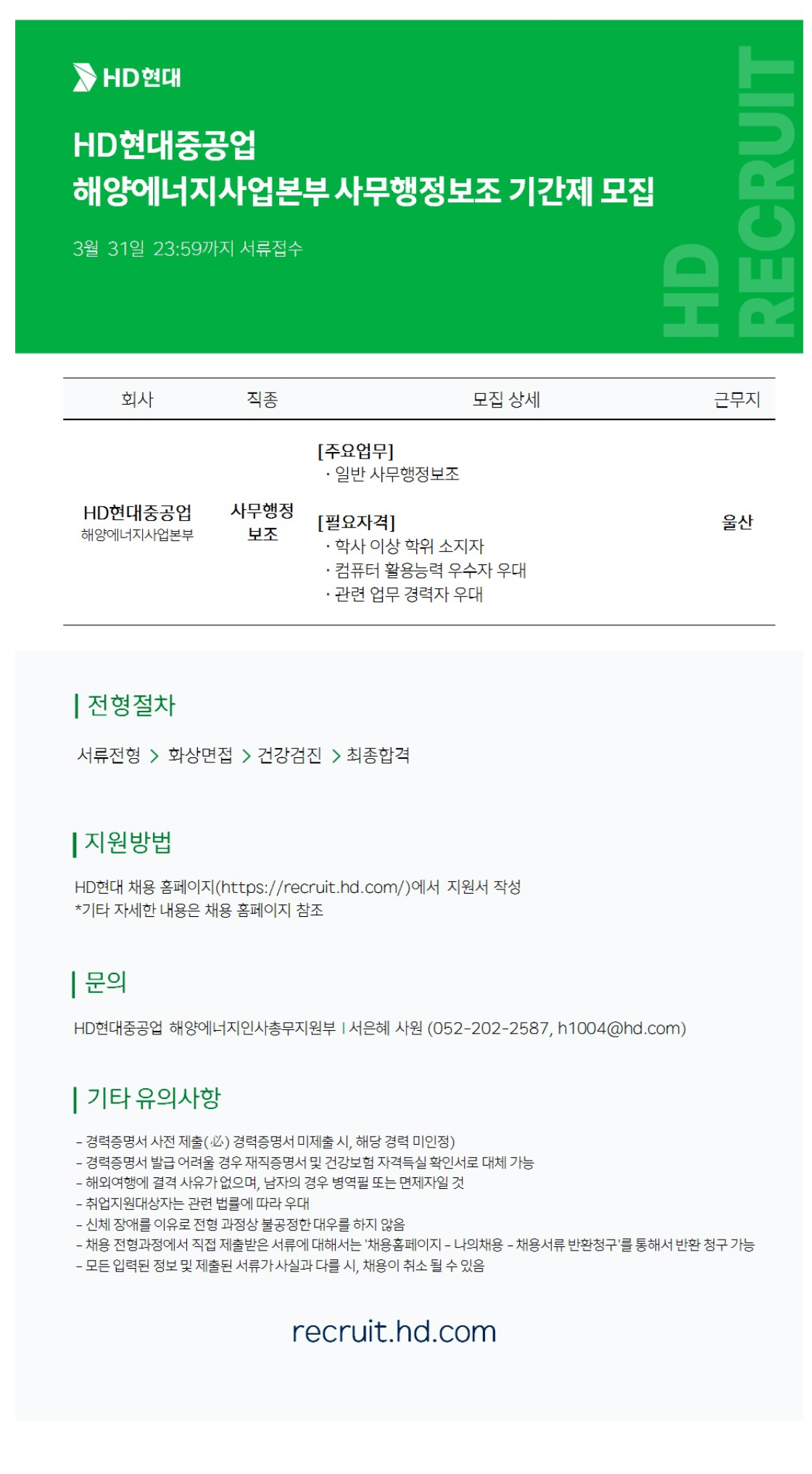 [HDÇö´ëÁß°ø¾÷] ÇØ¾ç¿¡³ÊÁö»ç¾÷º»ºÎ »ç¹«ÇàÁ¤º¸Á¶ ¸ðÁý °ø°í