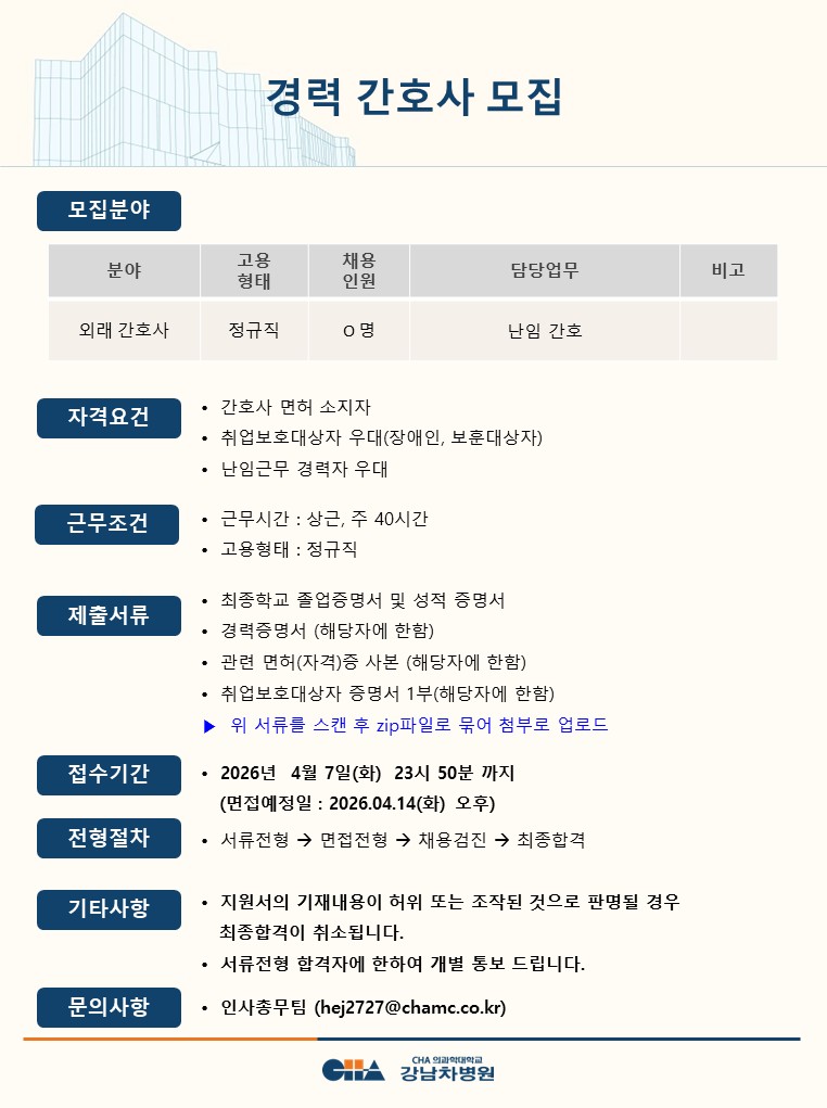 [°­³²Â÷º´¿ø] °æ·ÂÁ÷ °£È£»ç(¿Ü·¡) ¸ðÁý