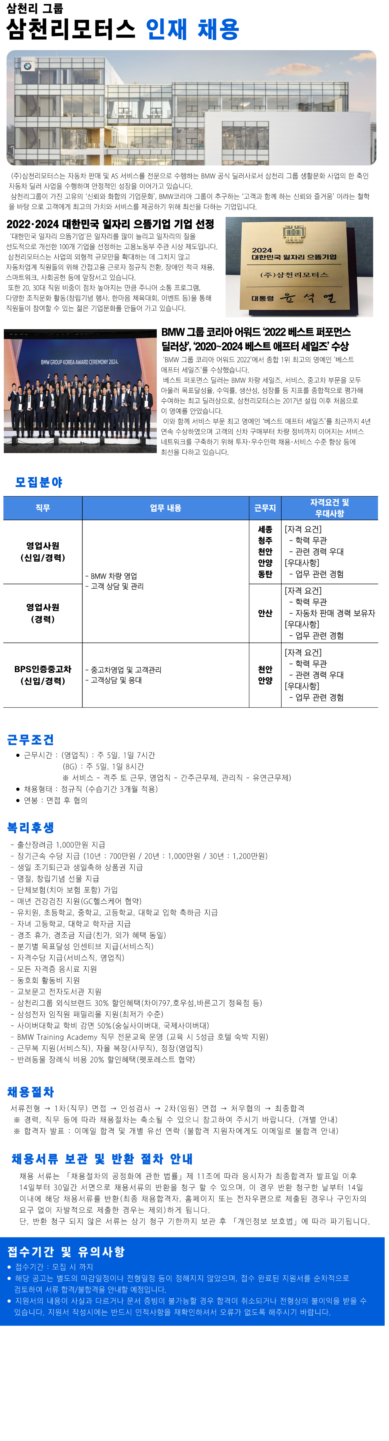 [BMW] ÀüÁöÁ¡ ¿µ¾÷»ç¿ø ½ÅÀÔ¡¤°æ·Â ÀÎÀç ¸ðÁý