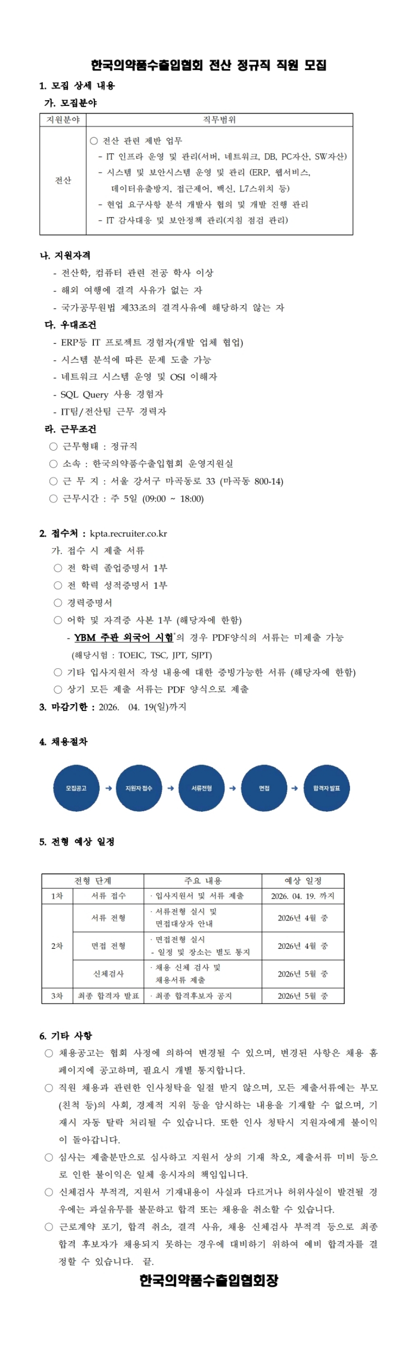 Çѱ¹ÀǾàǰ¼öÃâÀÔÇùȸ Àü»ê Á¤±ÔÁ÷ Á÷¿ø ¸ðÁý