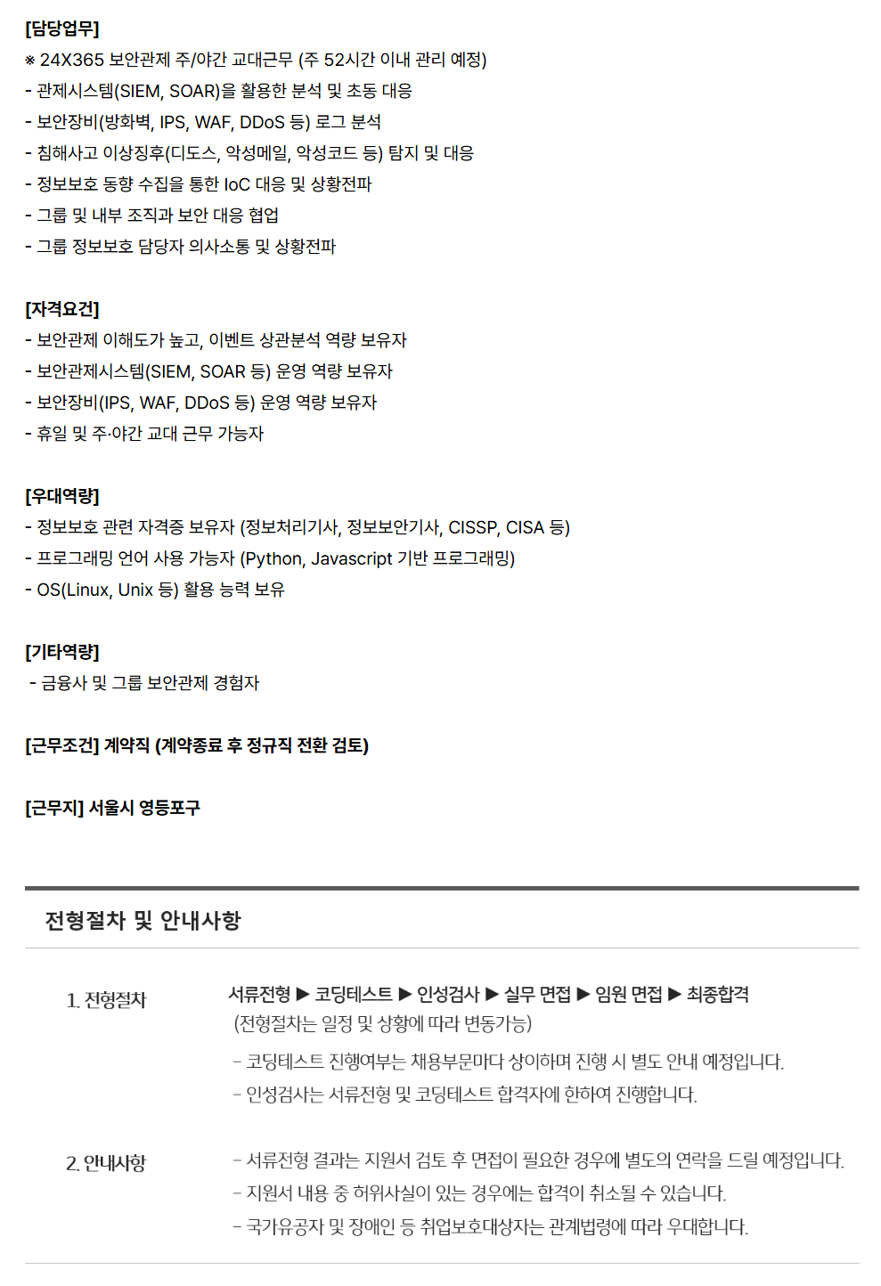 - º¸¾È°üÁ¦½Ã½ºÅÛ(SIEM, SOAR µî) ¿î¿µ ¿ª·® º¸À¯ÀÚ