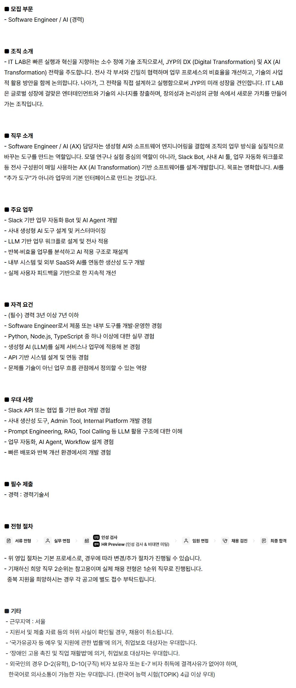 [JYP ENTERTAINMENT] Software Engineer / AI (°æ·Â)