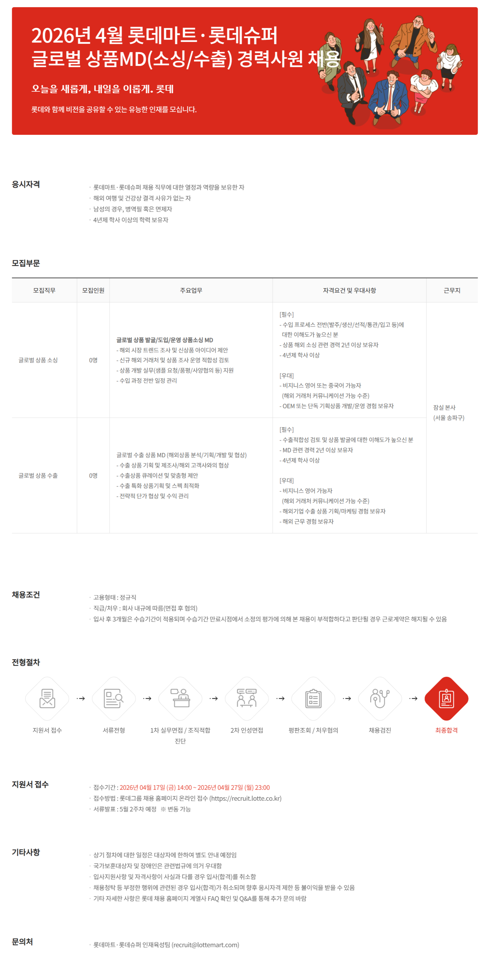 2026³â 4¿ù ·Ôµ¥¸¶Æ®··Ôµ¥½´ÆÛ ±Û·Î¹ú »óǰMD(¼Ò½Ì/¼öÃâ) °æ·Â»ç¿ø ä¿ë