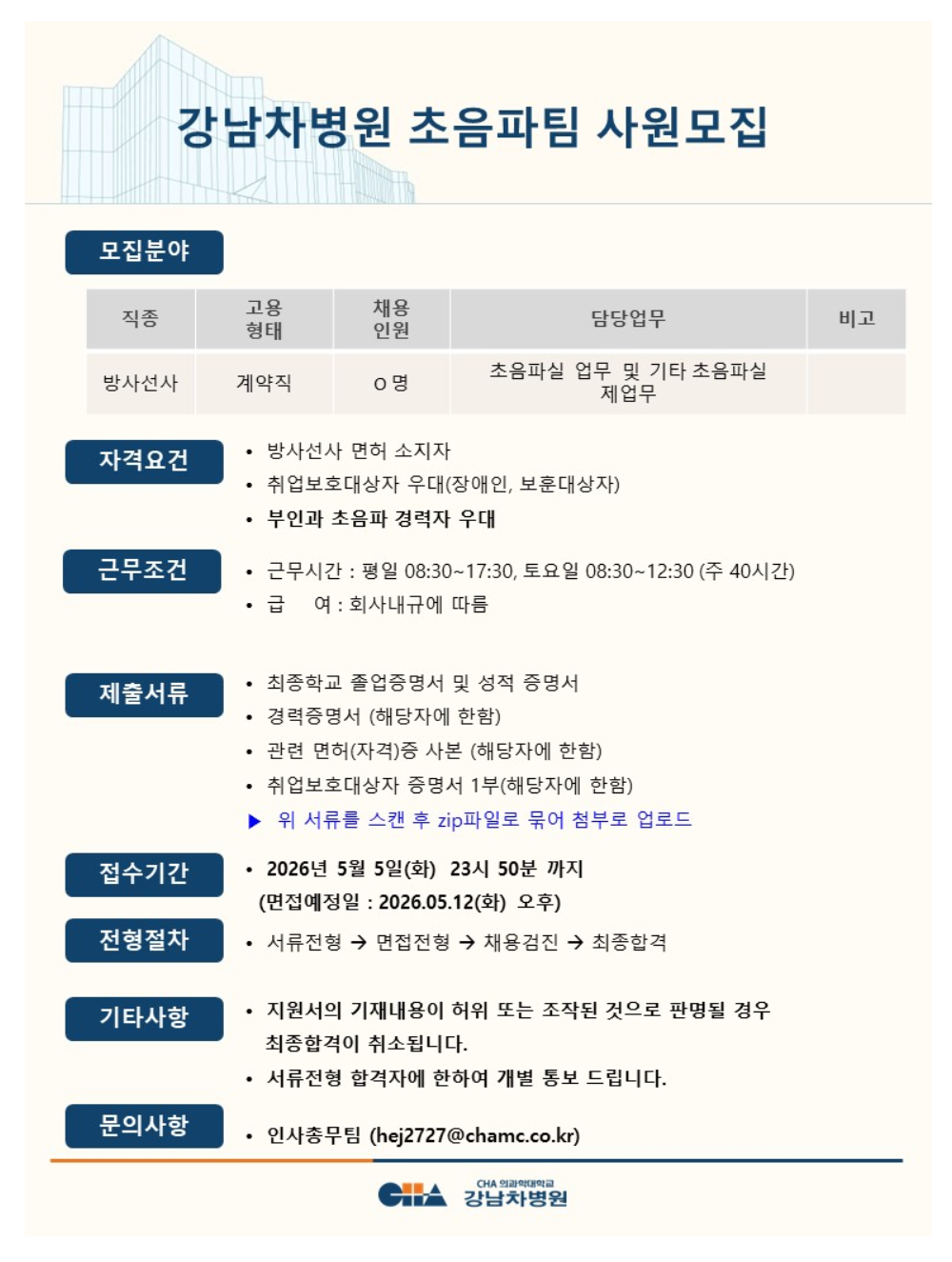[°³²Â÷º´¿ø] ÃÊÀ½ÆÄÆÀ ¹æ»ç¼±»ç ¸ðÁý