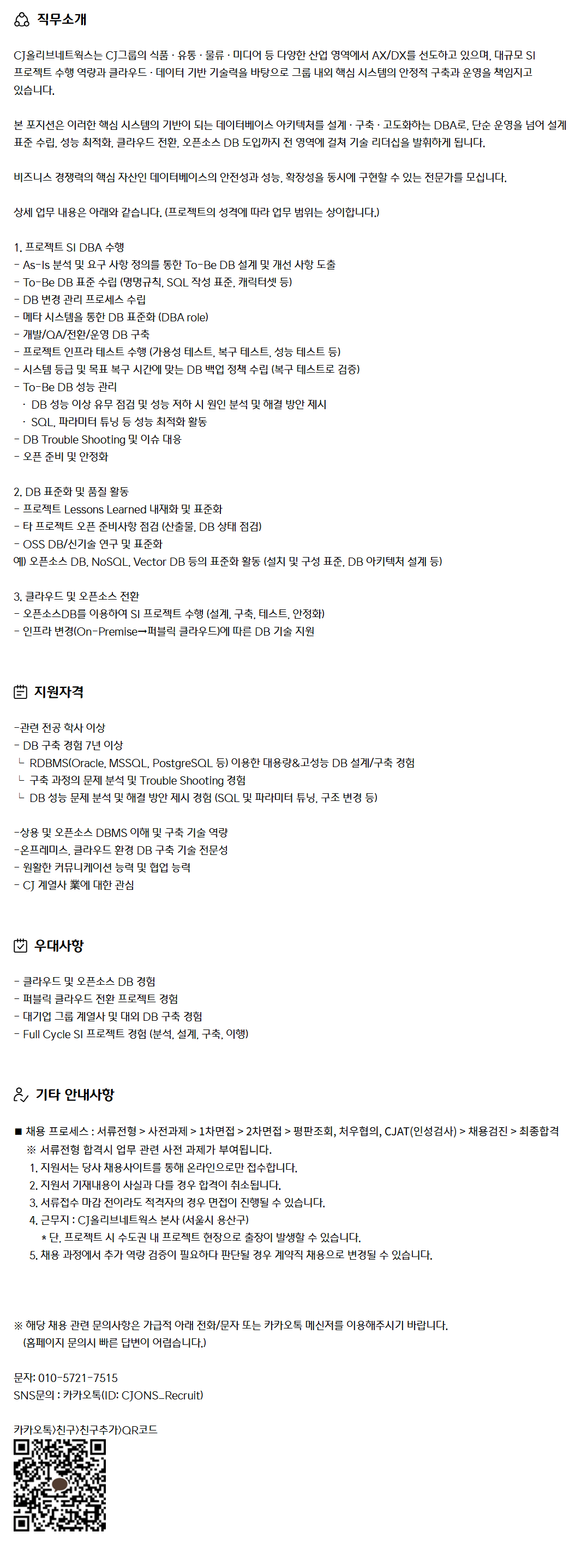 º» Æ÷Áö¼ÇÀº ÀÌ·¯ÇÑ ÇÙ½É ½Ã½ºÅÛÀÇ ±â¹ÝÀÌ µÇ´Â µ¥ÀÌÅͺ£À̽º ¾ÆÅ°ÅØÃ³¸¦ ¼³°è¡¤±¸Ãࡤ°íµµÈÇÏ´Â DBA·Î, ´Ü¼ø ¿î¿µÀ» ³Ñ¾î ¼³°è Ç¥ÁØ ¼ö¸³, ¼º´É ÃÖÀûÈ, Ŭ¶ó¿ìµå Àüȯ, ¿ÀǼҽº DB µµÀÔ±îÁö Àü ¿µ¿ª¿¡ °ÉÃÄ ±â¼ú ¸®´õ½ÊÀ» ¹ßÈÖÇÏ°Ô µË´Ï´Ù.